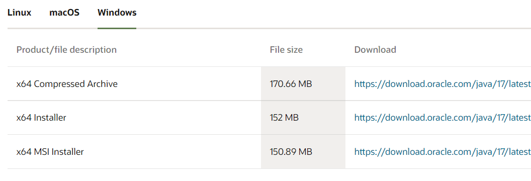 1、在java的官网下载页面找到安装包进行安装。找到对应的操作系统,第一个是直接下载压缩包,第二个是下载一个下载器再安装,我是直接下的第一个。
