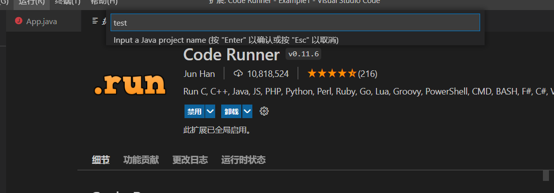 1、插件下载,找到以下两个插件进行安装,第一个会将有关Java的插件装完,第二个是代码运行插件