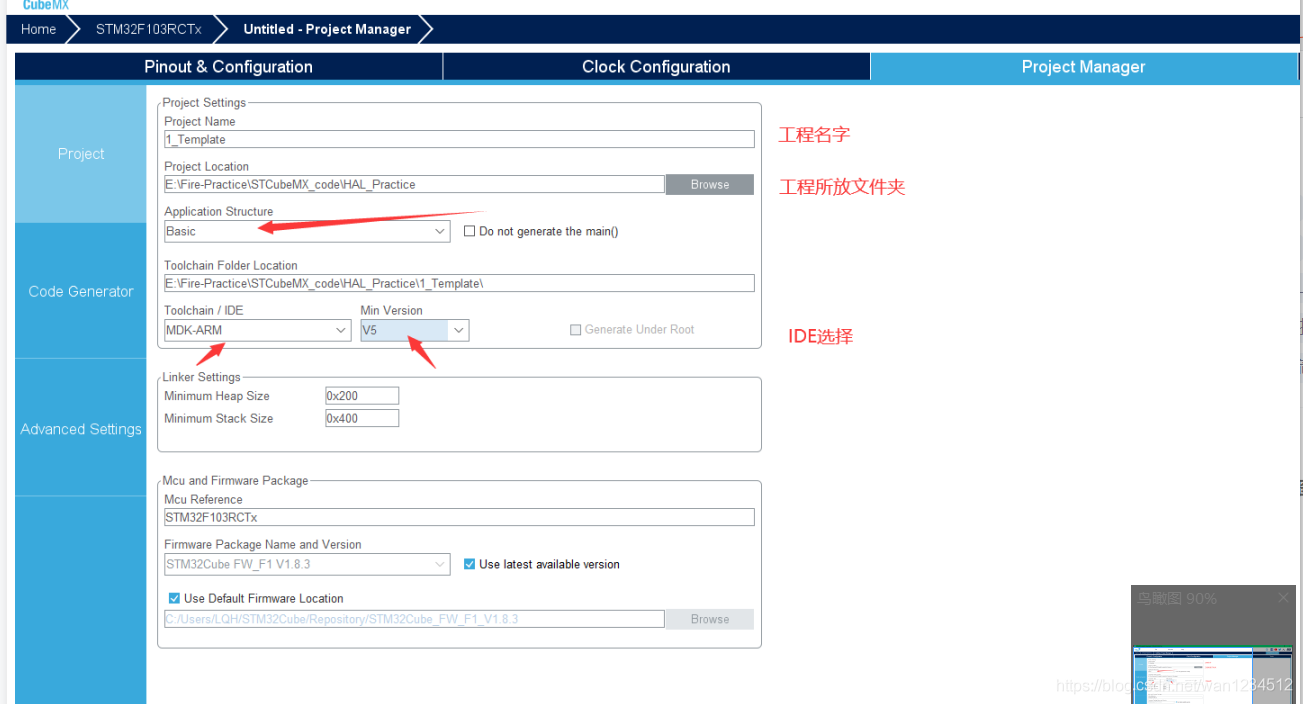 硬件平台:正点原子STM32MINI开发板(STM32RCT6)