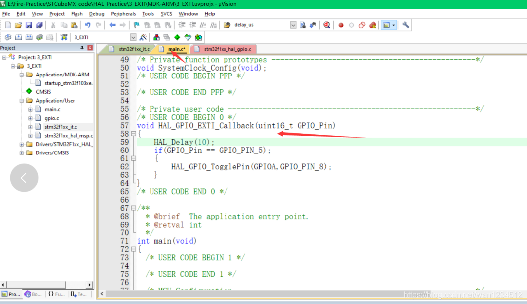 1、在stm32f1xx_it.c中有此外部中断的服务函数