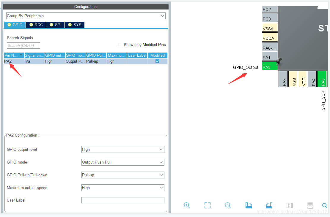 2、初始化PA2,当做SPI软件触发引脚,然后配置好工程其他文件生成代码即可。
