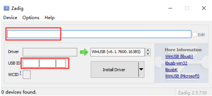 1、安装驱动这部分直接搬运的上面链接中的内容。在分享的文件中,LC-PI-200S\Tools\工厂出货烧录Flash+功能测试指令包\F1C200S\F1C200S目录下有一个 zadig-2.5.exe 打开。