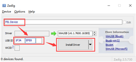 在框中输入 FEL Device ,然后在 USB ID 中输入 1F3A EFE8