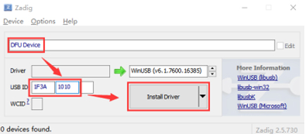 在框中输入 DFU Device ,然后在 USB ID 中输入 1F3A 1010