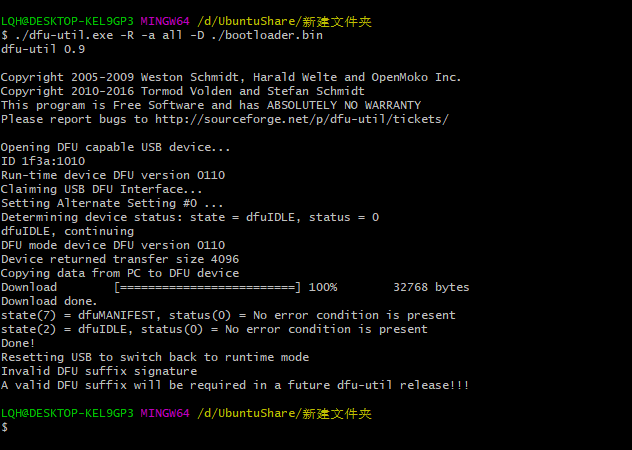 ./dfu-util.exe -R -a all -D ./bootloader.bin             # 一些开机信息打印