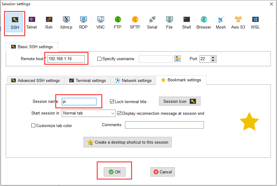 在配置好SSH后,就可以使用MobaXterm等远程SSH登录树莓派了。