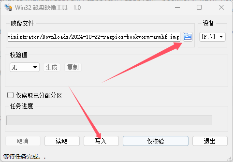 然后使用win32diskimager选择我们刚刚解压好的镜像。