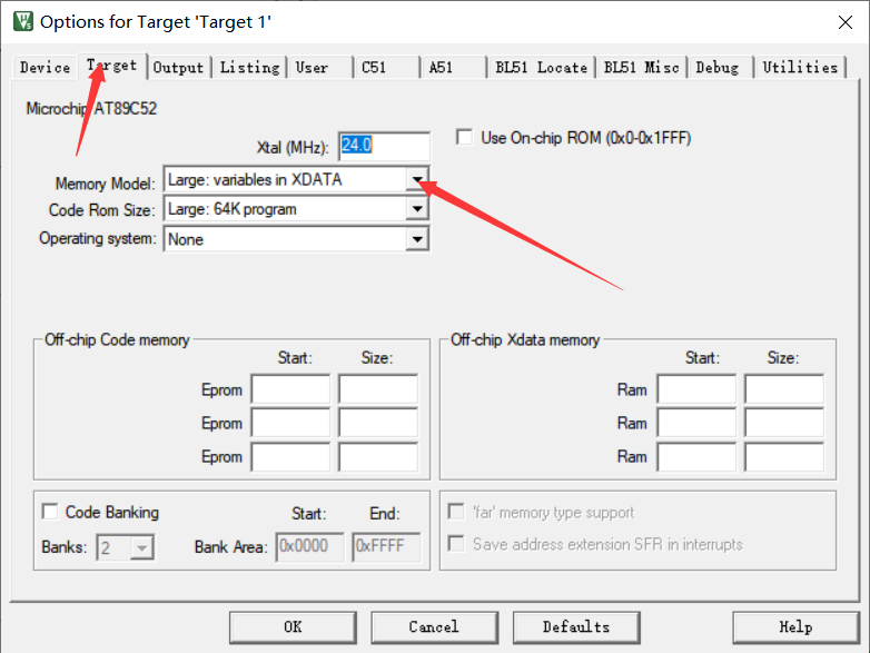 注意一点就是我们在编代码的时候,有可能会遇到内存不够的情况,就需要外扩一块RAM,至少我在做这个的时候遇到了这个问题,然后需要执行以下操作。
